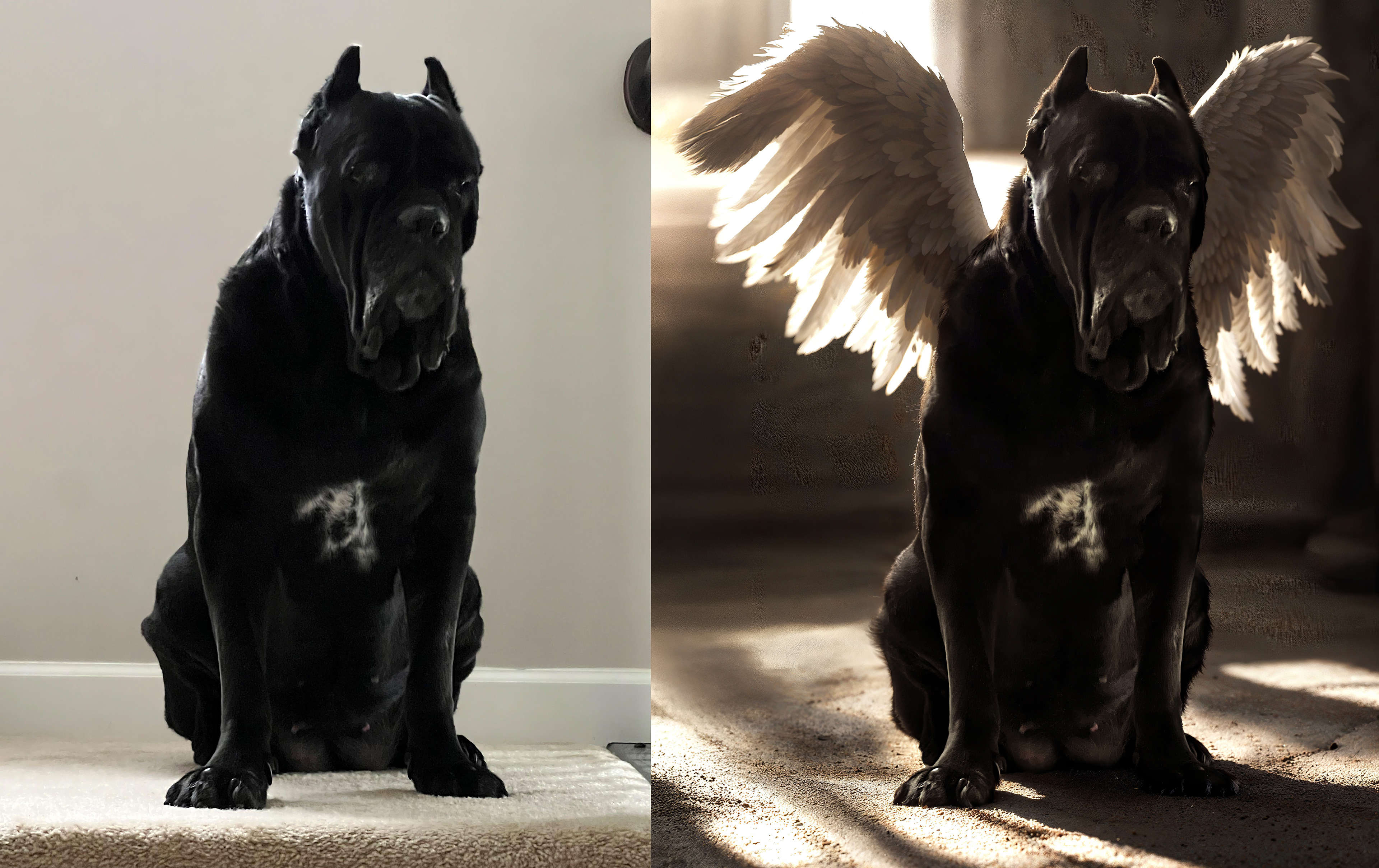 adding wings to a passed away dog